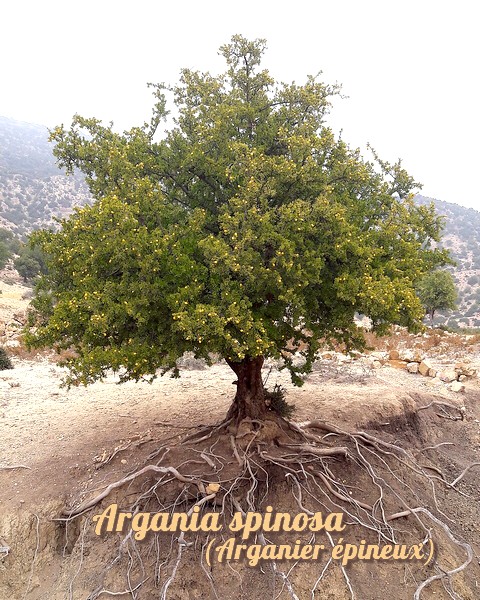 L'Arganier épineux est un arbre à feuillage persistant haut de 8 à 10 mètres. Il atteint parfois l'âge de 200 ans dans des régions semi-désertiques arides pauvres et chaudes de l'Afrique du nord-ouest,surtout du Maroc.