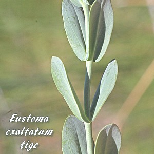 Haut de 30 à 90 centimètres, le Lisianthe de Russell présente 2 à 4 tiges coriaces, glabres, peu ramifiées, de couleur vert gris bleuté, dressées, portant des feuilles disposées de façon opposée. Ces feuilles