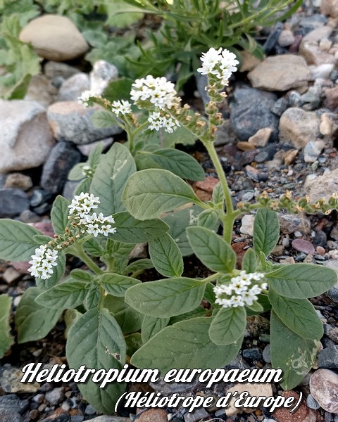 Heliotropium europaeum (Héliotrope d'Europe) est une espèce végétale appartenant à la famille des Héliotropiacées originaire du pourtour méditerranéen européen (de l'Espagne à l'Ukraine), africain (du Maroc à la Lybie), du Moyen-Orient (Turquie, Liban, Syrie), de la Russie d'Urope du sud et de la Péninsule indienne. Il a été introduit dans de nombreux états d'Amérique du nord (USA, Mexique), d'Afrique, d'Asie et d'Australie ... (