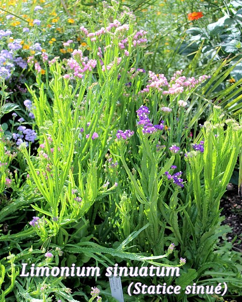 Le Statice sinué est une plante herbacée vivace à feuillage persistant peu pérenne, souvent considérée comme une annuelle, haute de 25 à 40 centimètres.
