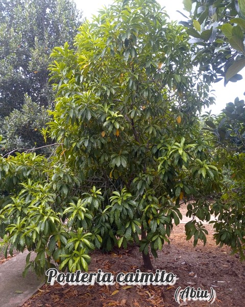 - notre espèce Pouteria caimito) appelée "Abiu" pour l'arbre et "abiu" pour le fruit qui n'a à voir avec la première que d'appartenir à la même famille et de produire des fruits très ressemblants.