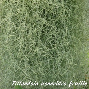 Son nom spécifique vient de sa ressemblance avec un lichen appelé "usnée". On la nomme également "Barbe de vieillard", "Cheveux d'ange" ou encore "Mousse espagnole".