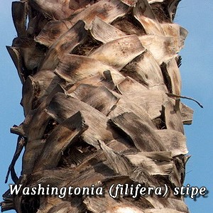 stipe) est solitaire, haute, recouverte partiellement ou en totalité de bases de vielles feuilles et de feuilles sèches