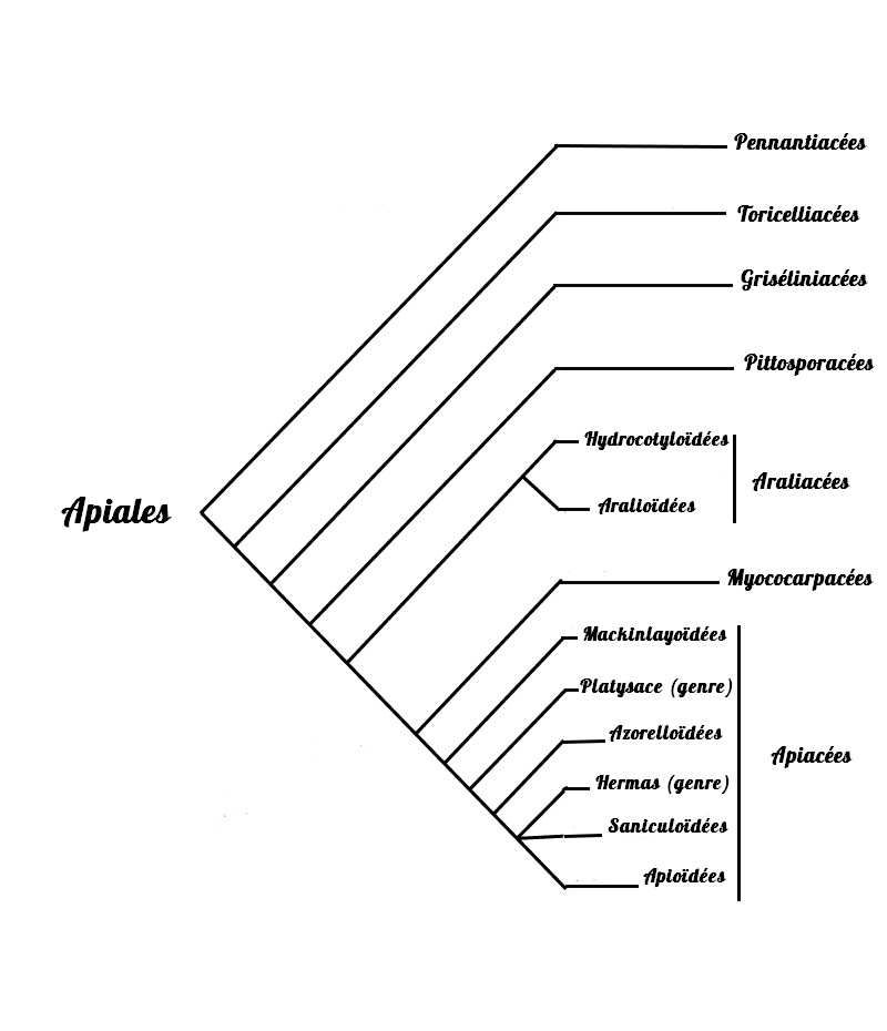 Les Apiales font partie du clade des Astéridées, leurs petites fleurs ont la forme d'étoiles. Elles sont regroupées en inflorescences terminales de type "ombelle", raison pour laquelle on les nommait "Ombellifères". Elles sont