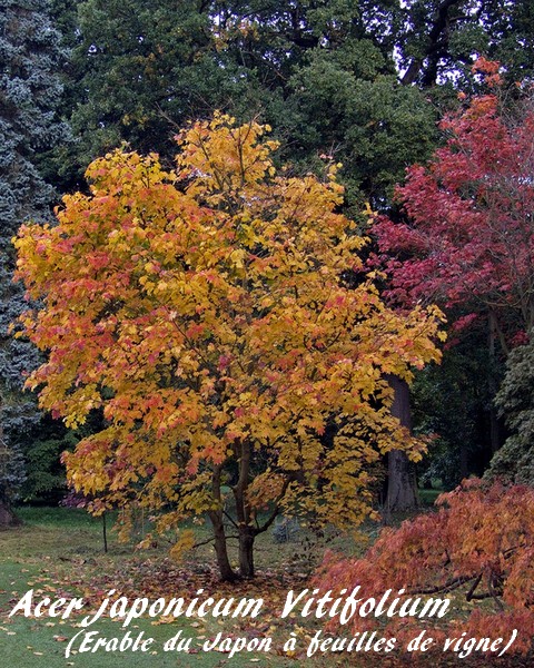 Comme pour le cultivar "Aconitifolium", les parents de l'Acer japonicum Vitifolium (Erable du Japon à feuilles de Vigne) vivent au Japon dans les sous-bois des forêts d'altitude.