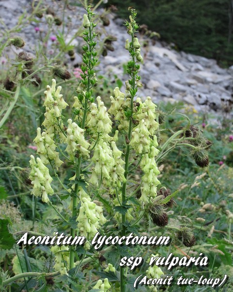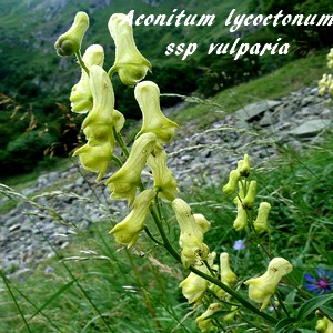 Aconitum lycoctonum sous-espèce vulparia (Aconit tue-loup) en est une sous-espèce originaire d'Europe centrale jusqu'à l'est de la France dont la transcription populaire est quelque peu erronée puisque "vulpus" désigne le renard et non le loup ("lupus").