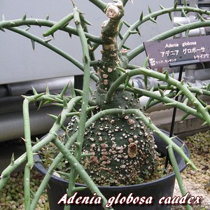 caudex également globuleux dont le diamètre peut atteindre 2,50 mètres. Ces dernières, plus ou moins succulentes, portent des épines