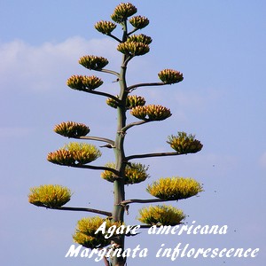 L'Agave américain marginé est une plante monocarpique qui fleurit en été au bout d'une quinzaine d'années de culture.