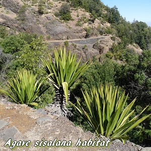Son nom spécifique vient du port mexicain de Sisal depuis lequel la fibre extraite de cette plante, que je connais pour l'avoir utilisée en fleuristerie (et d'ailleurs appelée sisal également), était expédiée dans le monde entier.