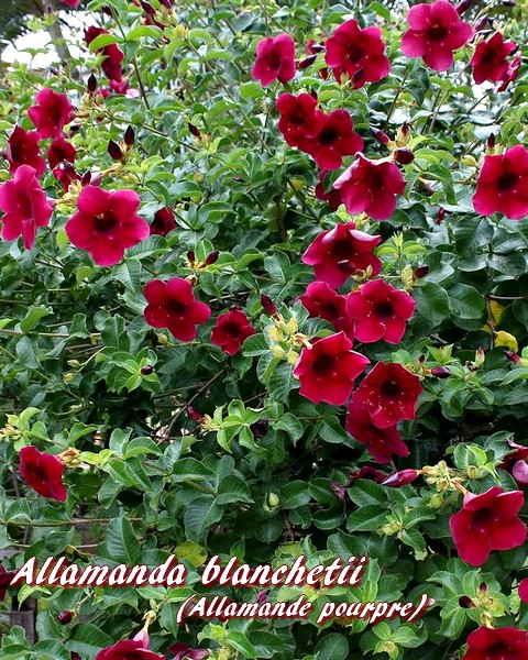 Allamanda blanchetii (Allamande ou Orélie pourpre) est une espèce végétale appartenant à la famille des Apocynacées (