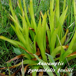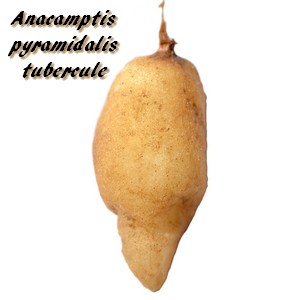 tubercule ovoïde vertical de couleur claire, l'Orchis pyramidal est une plante grêle présentant une rosette de quelques feuilles