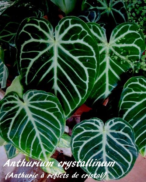 L'Anthurium crystallinum (que l'on pourrait traduire par Anthurie à reflets de cristal) est une espèce végétale appartenant à la famille des Aracées (sous-famille des Pothoïdées, tribu des Anthuriées) originaire d'Amérique centrale et d'Amérique du sud (Panma, Pérou). Dans la classification de Cronquist, cette espèce se trouve dans l'ordre des Arales et non dans celui des Alismatales comme dans la classification phylogénétique APG III.