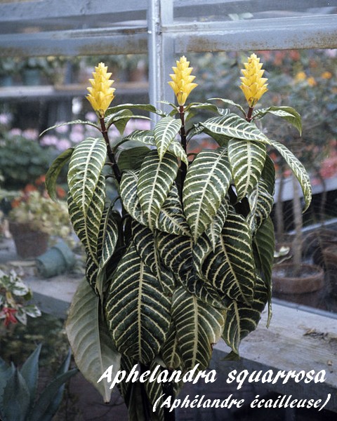 Aphelandra squarrosa (Plante zèbre, Aphélandre squarreuse) est une espèce végétale appartenant à la famille des Acanthacées (
