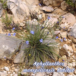 L'Aphyllanthes monspeliensis pousse sur des sols marneux ou calcaires exposés au soleil, il est très bien adapté à la sécheresse.