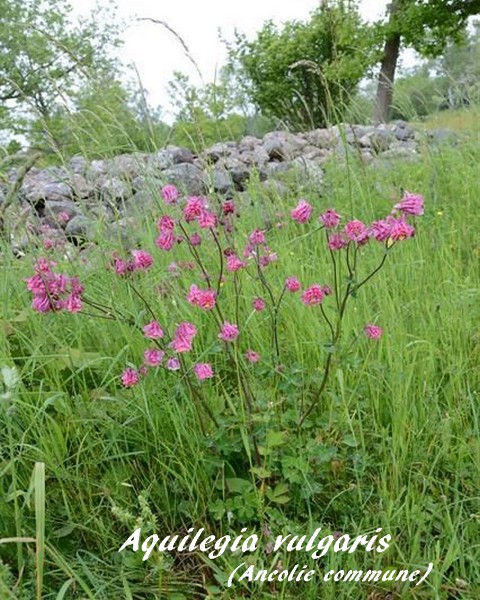 Aquilegia vulgaris a pris le nom d' "Ancolie des jardins", outre sa traduction littérale d' "Ancolie vulgaire".