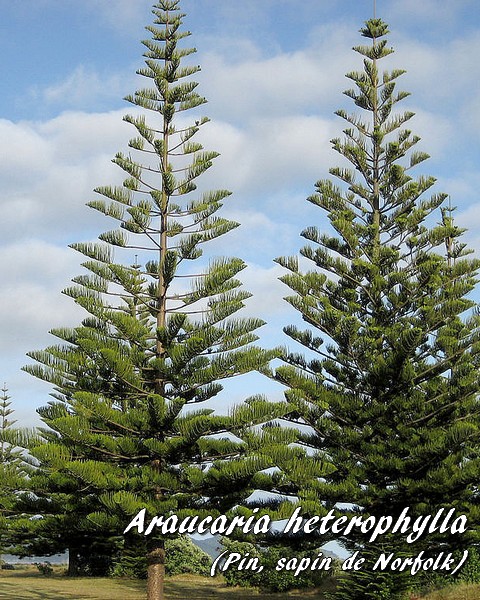Araucaria heterophylla (Pin de Norfolk) est une espèce végétale appartenant à la famille des Araucariacées originaire, comme son nom l'indique, de l'île de Norfolk située à l'est et au large de l'Australie, entre la Nouvelle-Guinée au nord et la Nouvelle-Zélande au sud.