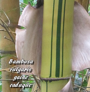 chaumes, appelés "cannes", de 4 à 10 centimètres de diamètre sont dressés, rectilignes et creux sauf à hauteur des noeuds. Ils sont lisses, vert brillant ou jaunes, striés de vert ou non, pourvus de gaines caduques.