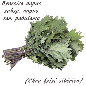 - Brassica napus subsp napus var. pabularia: le chou frisé sibérien également appelé Chou kale de Russie.