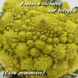 Bourgeonnante chez le Chou-fleur classique, cette pré-inflorescence présente de petites pyramides à sa surface chez le Chou Romanesco. Si on ne la récolte pas, elle continue à pousser en