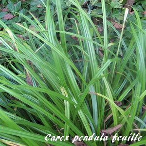 Ses noms spécifique et vernaculaire font référence à ses épis pendants, ce qui lui vaut un autre nom populaire, "Laîche à épis pendants". Compte-tenu de sa taille, elle est également nommée "Grande laîche pleureuse".