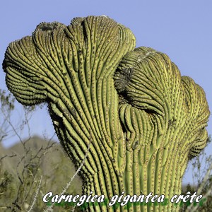Cereus giganteus, les indiens l'appellent "Saguaro" (prononcer "sah-wah-roh"). Les américains l'appelent "Sage of the desert", traduit en français par "Sage du désert". Son nom spécifique fait quant à lui état de sa taille, taille qu'il peut atteindre en 150 années de vie pour un poids de 4 à 5 tonnes. Sa pousse lente et sa reproduction peu abondante ont conduit les autorités américaines à en faire une espèce protégée.