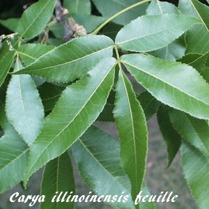 Le Carya illinoinensis (Pacanier) est une espèce végétale appartenant à la famille des Juglandacées (sous-famille des Juglandoïdées, tribu des Juglandées, sous-tribu des Caryinées) originaire d'Amérique du nord et plus particulièrement de l'est des Etats-Unis: Illinois, Iowa, Kansas, Missouri, Oklahoma, Texas, Virginie.