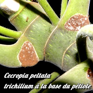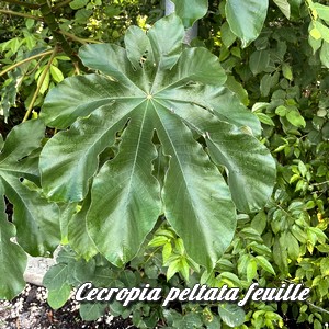 peltées sont à l'origine de son nom spécifique. Sa forme lui vaut les noms vernaculaires de "Parasolier" ou de "Faux_ricin", son tronc creux ceux de "Bois-trompette" ou de "Bois-canon".