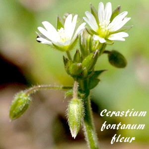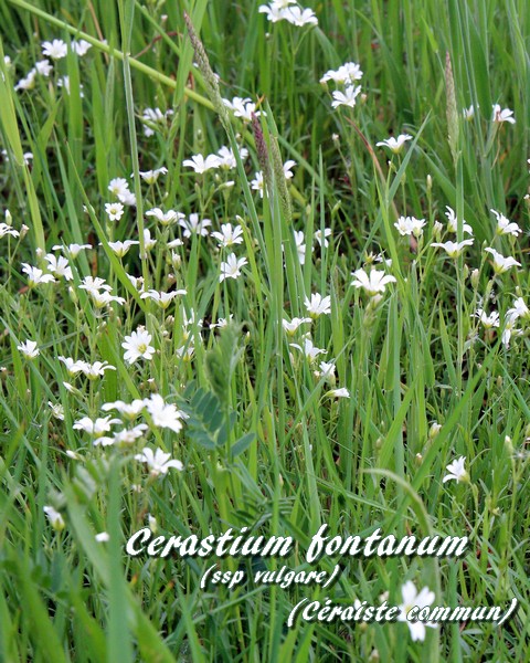 Cerastium fontanum (Céraiste commun) est une espèce végétale appartenant à la famille des Caryophyllacées (