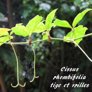 Ses tiges coriaces ramifiées portent des vrilles opposées aux feuilles