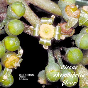 Rhoicissus rhomboidea originaire d'Afrique australe, notamment du Natal. Le "GRIN" en fait un synonyme du