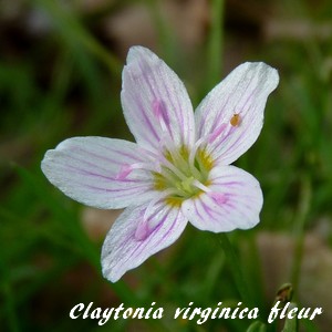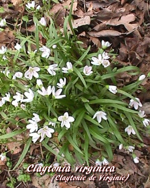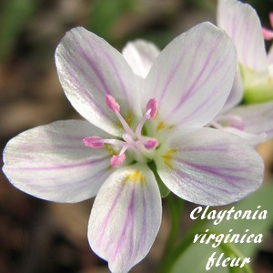 Claytonia virginica (Claytonie de Virginie) est une espèce végétale originaire de Virginie, du moins récoltée là pour la première fois par le botaniste britannique John Clayton. Elle est présente dans les zones tempérées d'Amérique du nord (centre et est des Etats-Unis, Québec et Ontario au Canada).