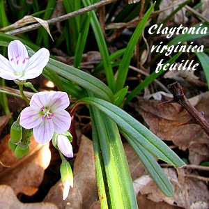 Appelée également "Claytonie à feuilles étroites", les Américains la nomment "Beauté du printemps de l'est" ou "Beauté de printemps de Virginie".