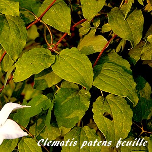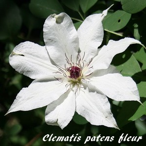 Clematis patens, j'ai retenu "Clématite à fleurs étalées", d'abord parce-qu'elle n'est pas la seule espèce de clématite à avoir de grandes fleurs, ensuite pour coller au plus près à la traduction littérale de "patens" (ouvert, étalé, accessible, exposé), par opposition aux fleurs petites, campanulées ou