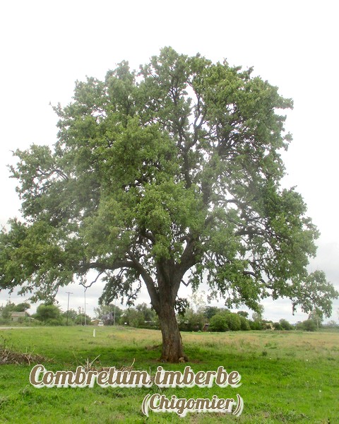 pubescents glabres, à l'inverse des combrètes en général. Parmi ses noms vernaculaires, "Chigomier" semble désigner à l'origine un arbuste tropical américain, "Bois de plomb" ou "Arbre de fer" en raison de la densité et de la dureté de son bois ou (non usité) littéralement "Combrète imberbe".