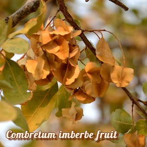 Ses fruits, initialement vert-jaunâtre pâle puis brun clair, sont les plus petits chez les combrètes. Ils présentent 4 ailes papyracées, ils sont ovoïdes et ne contiennent qu'une seule petite amande.