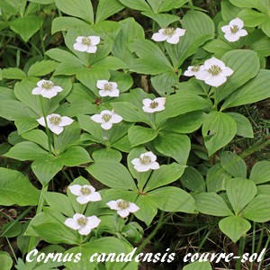 genre Cornus, sous-genre Chamaepenclymenum) originaire d'Amérique du nord et d'Asie, notamment du Canada, ce que son nom spécifique indique.
