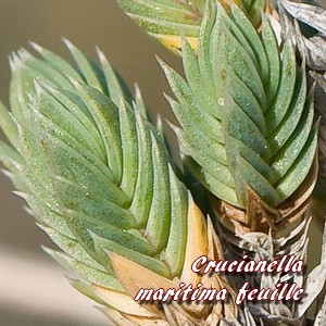 mucronées, glauques à bord blanc, opposées en croix. A l'aisselle de chaque involucre naît une fleur jaunâtre composée d'un