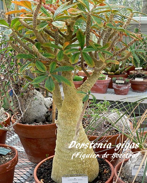 La culture et la reproduction de la Dorstenia gigas hors de son habitat naturel sont infiniment laborieuses, non envisageables pour des amateurs lambda.