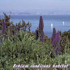 La Vipérine de Madère est une très belle plante cultivée dans les régions douces et peu pluvieuses des zones tempérées pour ses propriétés ornementales exceptionnelles avec ses immenses inflorescences et son splendide feuillage.