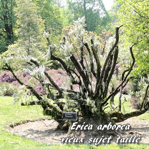 sous-famille des Ericoïdées, tribu des Ericées) originaire du pourtour méditerranéen (Europe, Asie, Afrique). En raison de la couleur de sa floraison, elle est dénommée populairement "Bruyère blanche".