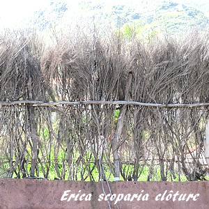 Son nom spécifique vient du latin "scoparius" (en forme de balai). C'est la bruyère dont on faisait les fameux balais ... de bruyère. Elle sert toujours à fabriquer des "brandes" utilisées par les maraîchers pour protéger leurs cultures du gel, mais aussi largement commercialisées pour constituer des brise-vent et surtout des brise-vue.