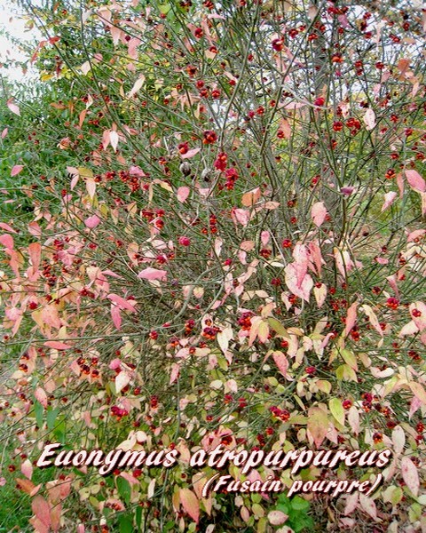 Le Fusain pourpre est un grand arbuste à feuillage caduc atteignant 8 mètres de hauteur.