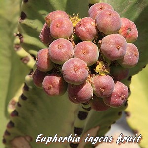 Son nom spécifique vient du latin "ingens" qui signifie "grand, immense, démesuré, colossal ..." pour rappeler sa taille. Elle est assez similaire à d'autres euphorbes colonnaires,