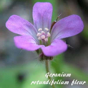 Geranium rotundifolium (Géranium à feuilles rondes) est une espèce végétale appartenant à la famille des Géraniacées originaire d'Europe, d'Asie occidentale et d'Afrique du nord.