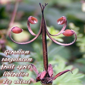 Pour cette raison, on le nomme "Géranium rouge sang". Pour la forme de son fruit, on l'appelle "Bec de grue" ou "Herbe à becquet".