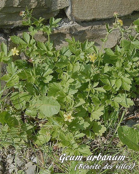 La Geum urbanum (Benoîte commune, Benoîte des villes, Herbe de Saint Benoît) se recontre communément en France.
