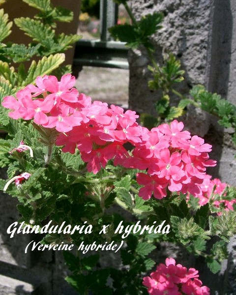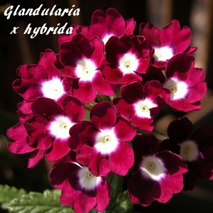 Glandularia x hybrida () est une espèce végétale appartenant à la famille des Verbénacées (
