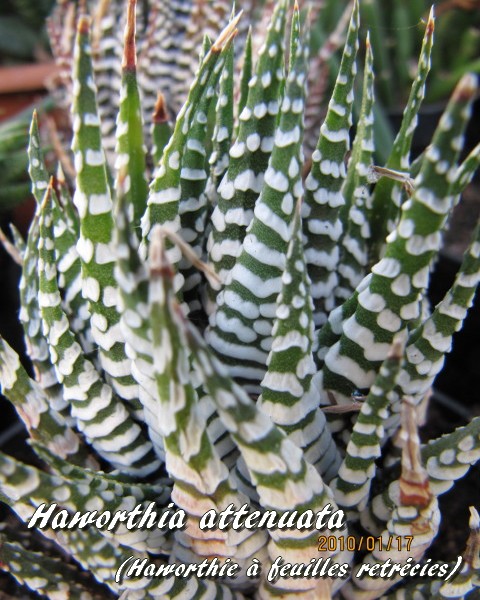 L'Haworthia attenuata (Haworthie à feuilles retrécies) est une espèce végétale appartenant à la famille des Asphodélacées (sous-famille des Asphodéloïdées) originaire du sud et du sud-ouest de l'Afrique.