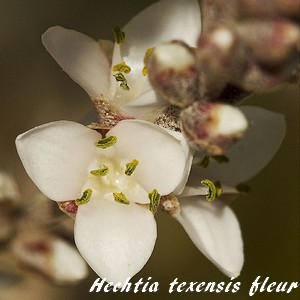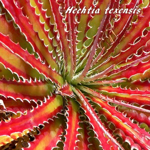 L'Hechtia texensis, espèce terrestre qui vit dans des conditions plus dificiles encore, et les pluies étant rares dans son habitat, a développé un caudex entre sa souche rhizomateuse et sa rosette de feuilles linéaires lancéolées épineuses et coriaces afin de stocker l'eau et les éléments nutritifs sous forme de sucs, d'où son classement dans la catégorie des "plantes succulentes".
