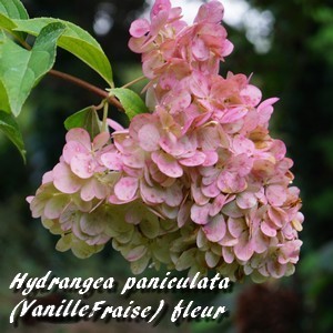 Hydrangea paniculata Vanille Fraise (fleurs virant au rose petit à petit puis au pourpre en dégradés)